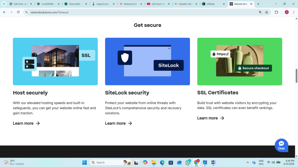 Security is a key component of Network Solution, with offerings such as SSL certificates, malware protection, site backup services, and domain privacy. These tools help protect websites, customer data, and search engine rankings, which is critical for trust and compliance.